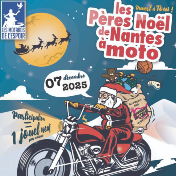 L'association motarde solidaire "Les Motards de l'Espoir", organise une collecte de jouets neufs au profit des Restos du cœur. La balade à moto "Les Pères Noël de Nantes" traversera plusieurs communes, avec une étape prévue à La Haye-Fouassière :