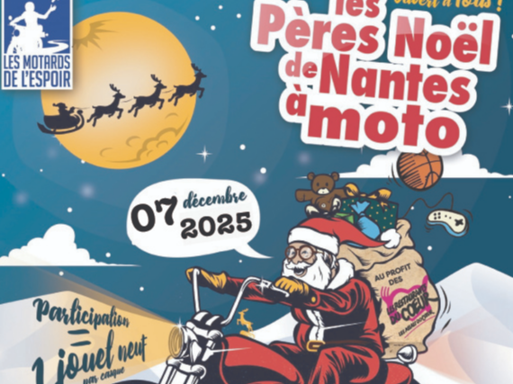 Passage des Pères-Noël de Nantes à moto, place Pirmil